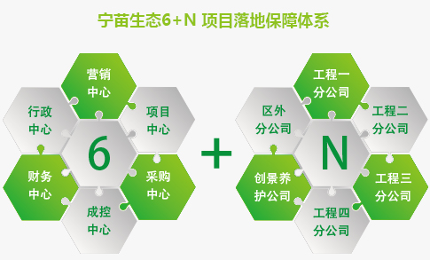 寧苗生態下設六大職能中心,經過多年的項目積累,形成了一整套科學、合理、完善的管理體系。對內通過集團內部“7項指標,14會流程”實現項目內控;對外從項目接洽起始,對項目方案、項目投標、項目簽約、項目控制、項目實施、竣工養護、項目交付實行全環節綜合統籌,嚴把采購、成控、核算、合同、法務關口,為項目工程公司提供多層級、全方位的立體式管理支撐服務。